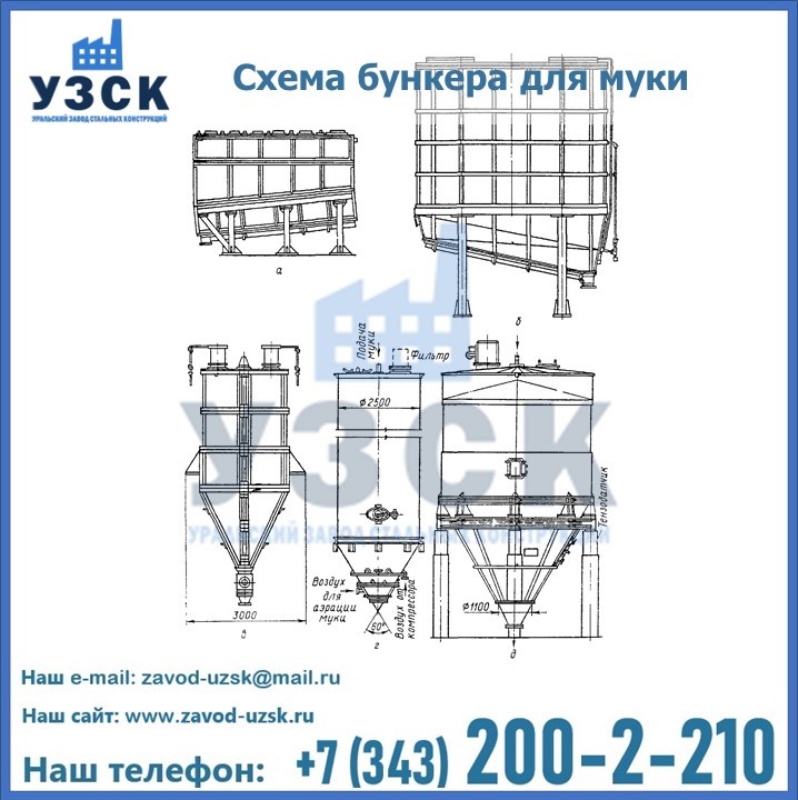 Завод «УЗСК» в Электростали осуществляет проектирование, производство и продажу бункеров для муки. Всю информацию, касающуюся производства, реализации и установки емкостного оборудования можно узнать на нашем сайте или по телефонам, указанным в разделе «КОНТАКТЫ».