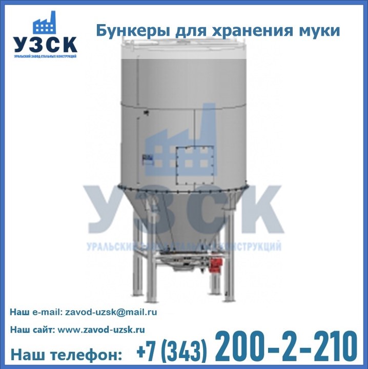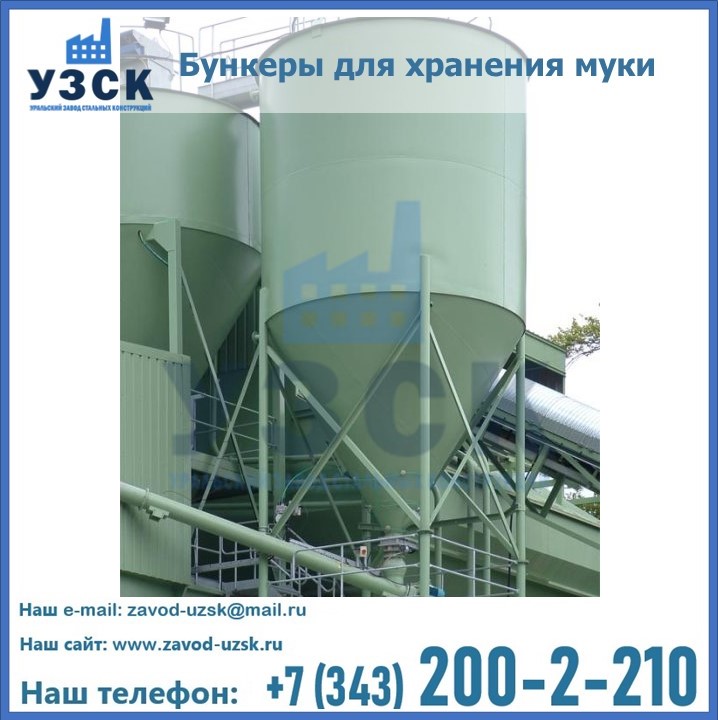Завод «УЗСК» в Электростали проектирует, производит и поставляет целевое оборудование, в том числе, бункеры для хранения муки и прочих сыпучих материалов.