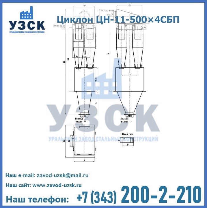 Уральский Завод Стальных Конструкций в Электростали производит и продает надежное, эффективное и производительное оборудование, имеющее длительную гарантию и большой эксплуатационный ресурс. УЗСК также предлагает циклоны из нержавеющей стали высокого качества. По желанию заказчика толщина стали для циклона и бункера может быть увеличена. Заказать и купить циклоны ЦН-11 высокого качества и по доступной цене можно через наш сайт или по указанному в разделе «Контакты» телефону.