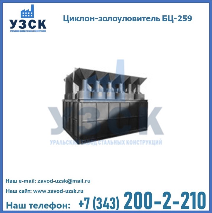 Если вы планируете купить то или иное оборудование, например, циклоны-золоуловители БЦ-259, то рекомендуем заказать данный товар на сайте УЗСК. Мы производим и реализуем продукцию высокого качества по приемлемой цене. Эксперты Уральского Завода Стальных Конструкций в Электростали проконсультируют вас по всем вопросам, помогут сделать выбор и оформить заказ без лишних временных затрат. Мы гарантируем соответствие нашей продукции всем требованиям ГОСТ и ТУ, а также износостойкость и высокую производительность предлагаемого оборудования. Если требуется изготовить циклон нестандартных размеров, то такой вариант выполнения заказа тоже предусмотрен, так как предприятие имеет собственные производственные площади и надежных поставщиков. На все поставляемое или производимое оборудование имеются чертежи и прочая техническая документация. Заказать и купить циклоны или прочее оборудование высокого качества и по доступной цене можно через наш сайт или по указанному в разделе «Контакты» телефону.