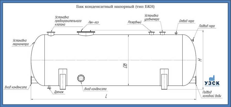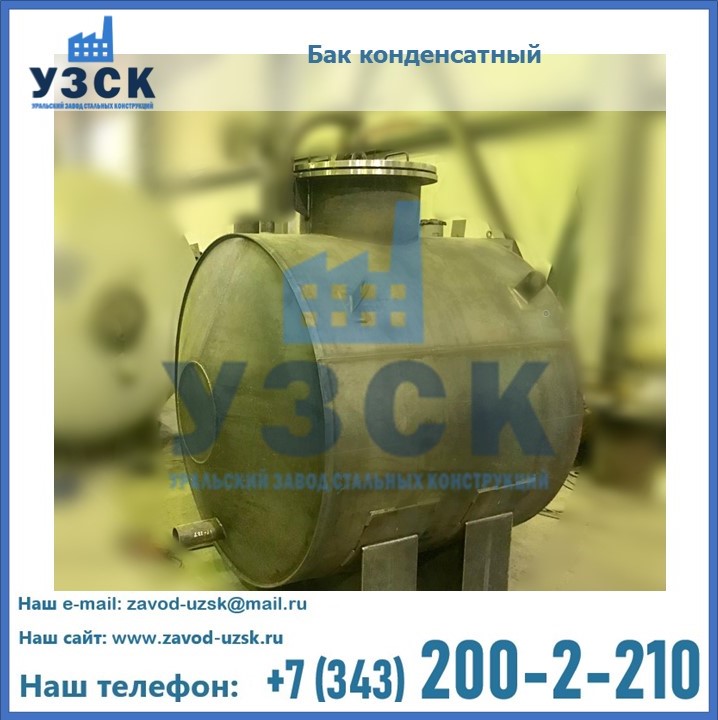 Многие заказчики стараются конденсатные баки купить по выгодной цене в компании «УЗСК» в Электростали. Причин несколько. Производитель поставляет емкости с полным комплектом лестниц, площадок обслуживания. Бак после гидравлических испытаний покрывают специальной внутренней и наружной краской, накладывают теплоизоляцию или наваривают крепеж для навески минматов. Условия теплоизоляции согласуются с заказчиком.